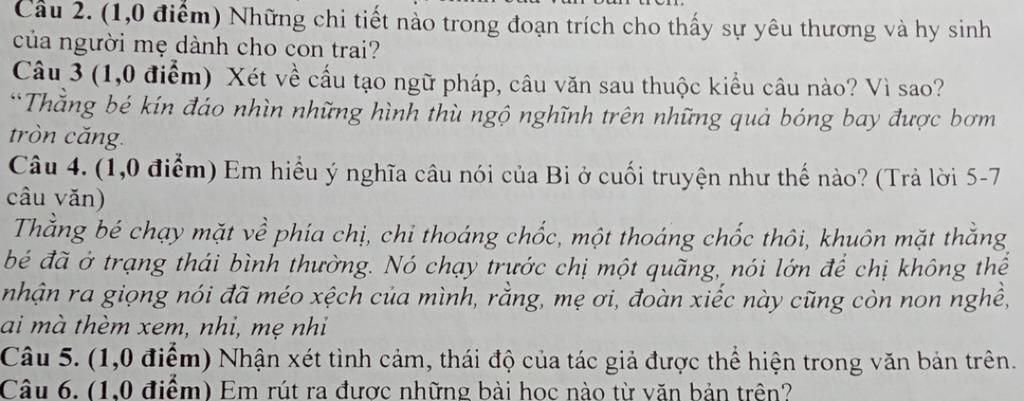 `-` Những chi tiết trong đoạn trích cho thấy sự yêu thương và hy sinh của người mẹ dành cho con trai: