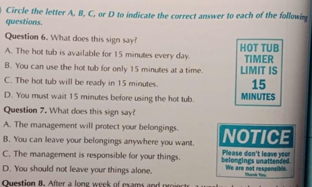 `6.` B (Timer limit is 15 minutes → Use only 15 minutes at a time).