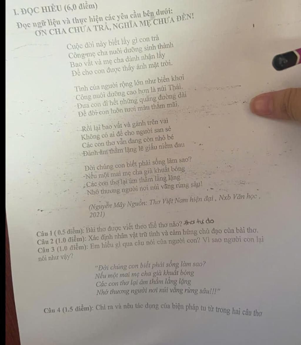 câu 2 : nhân vật trữ tình : cha mẹ , cảm hứng chủ đạo : nói về sự biết ơn của người con đối với cha mẹ , công lao sinh thành và tình cảm của ch mẹ dành cho con .