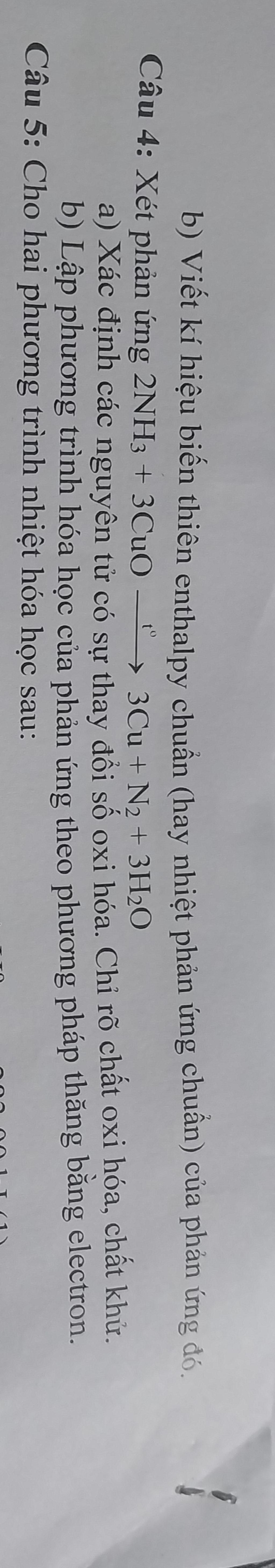 `a)` $\rm 2NH_3 + CuO \xrightarrow{t^o} 3Cu +N_2 +3H_2O$