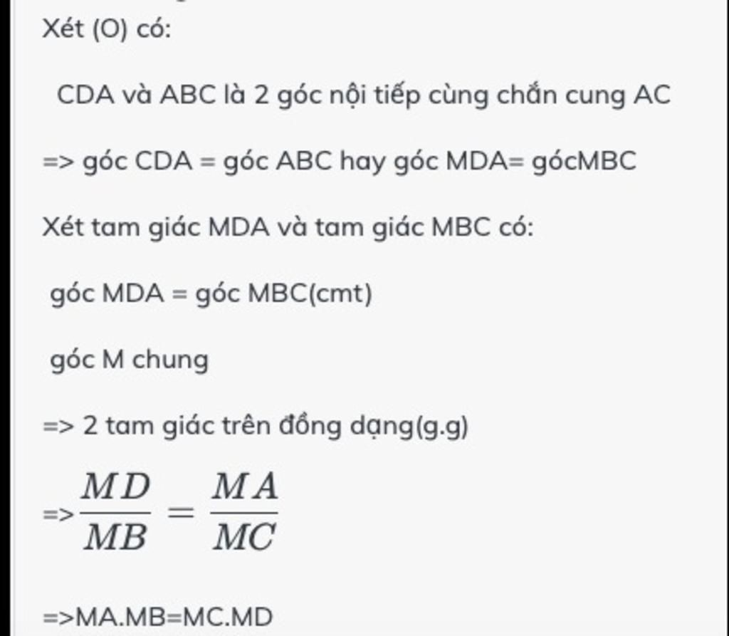 Nếu MC là đường tiếp tuyến của đường tròn (O) và MAB là cát tuyến thì ta có MC.MC = MA.MB ( hoặc là: MC^2=MA.MB)