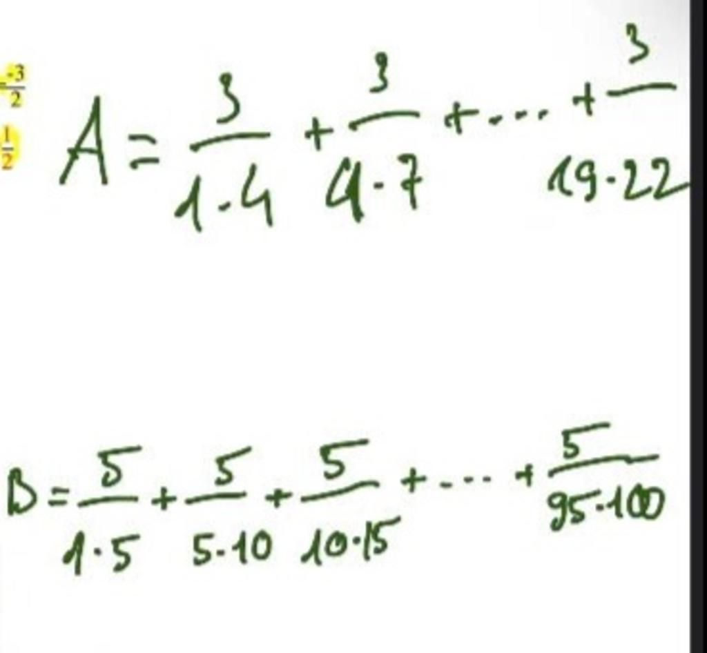 B= 5/1.5 + ( 1/5- 1/10+ 1/10- 1/15+ ..........+ 1/95- 1/100)