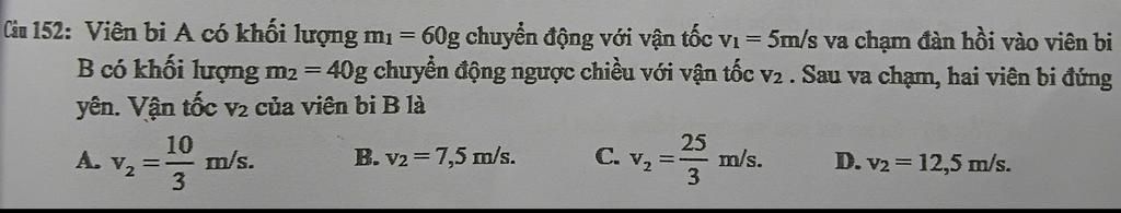 Tớ còn yếu bài ĐL á nên làm không chắc, tớ quên va chạm đàn hồi là ngược chiều ạ, xin lỗi cậu. `->` Nếu c có thắc mắc j về bài làm của c thì nhắn mình nhé, mình giúp cho.
