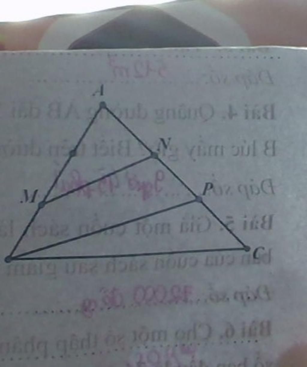 cho tam giác ABC có diện tích là 360 cm2. Biết AB=3BM ; AN=NP=PC.