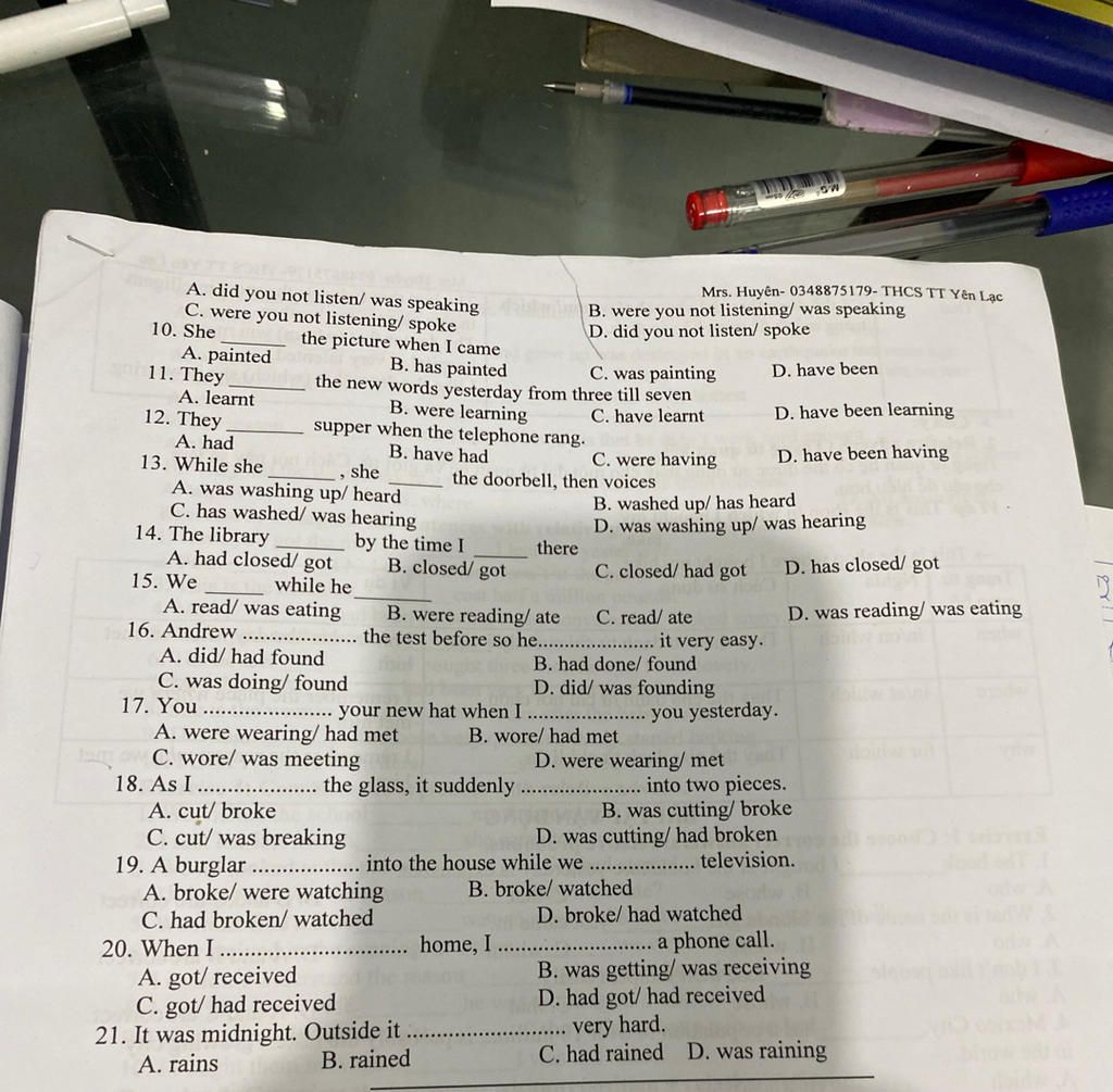 --> Diễn tả hành động đang xảy ra thì có hành động khác chen vào (while / when)