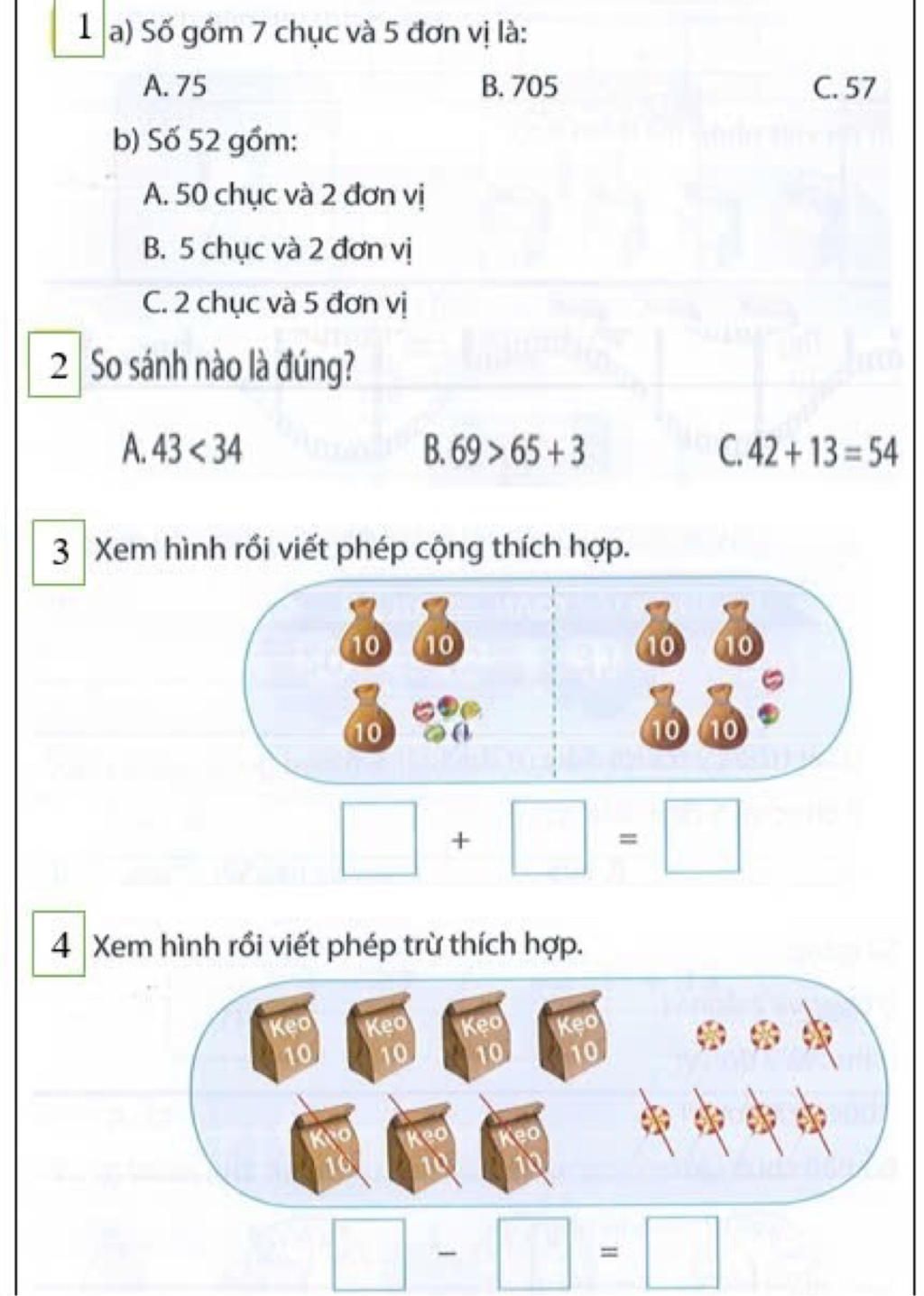 Câu `4:` `77 - 35 = 42(` cái kẹo `)`
