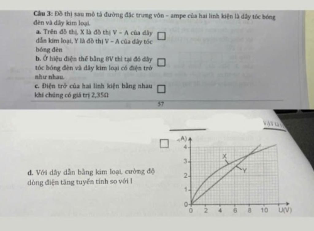 a) Đúng vì dẫy dẫn kim loại có điện trở phụ thuộc vào nhiệt độ còn điện trở bóng đèn thi không.