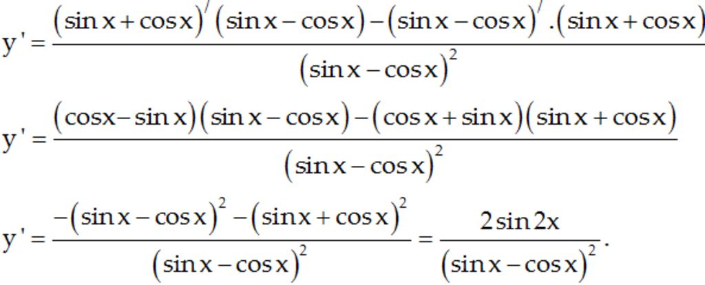 Ta có: y'=(sinx+cosx)'(sinx-cosx)'.(sinx+cosx):(sinx-cosx)∧2