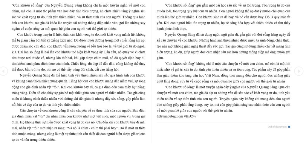 Viết đoạn văn 200 chữ phân tích chủ đề của truyện “Con khướu sổ lồng”.