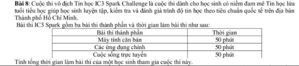 Tổng thời gian làm bài của một học sinh tham gia cuộc thi này là:
