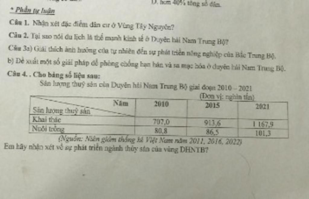 Câu 1: Nhận xét đặc điểm dân cư ở Vùng Tây Nguyên