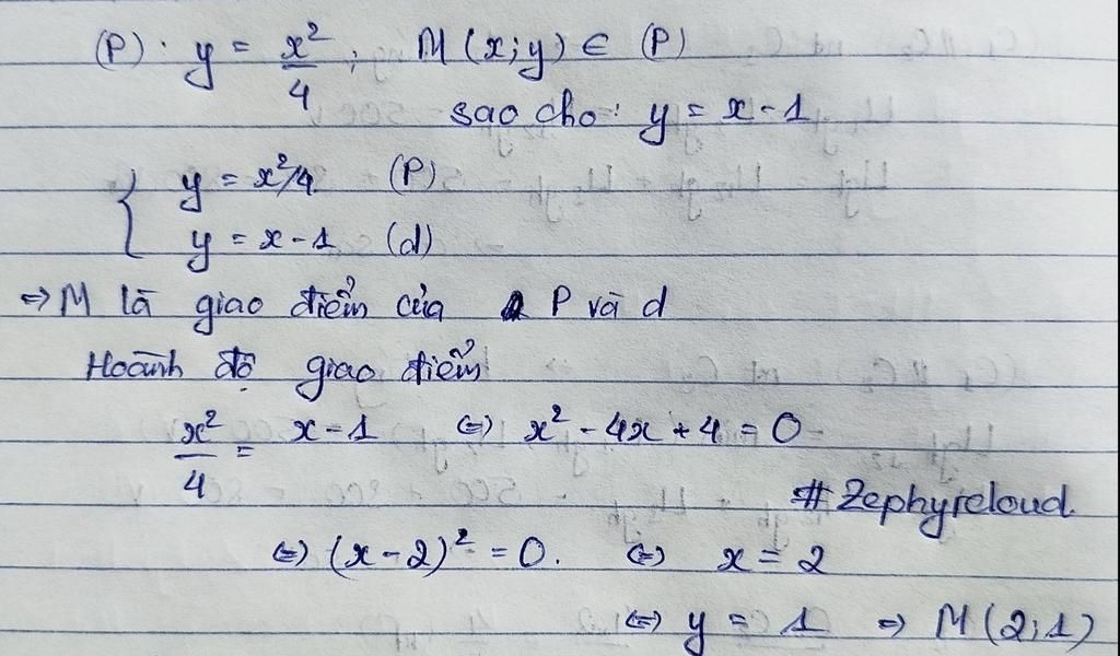 Cho parabol y=x^2/4, tìm tọa độ điểm M thuộc P có tung độ nhỏ hơn hoành độ 1 đơn vị.