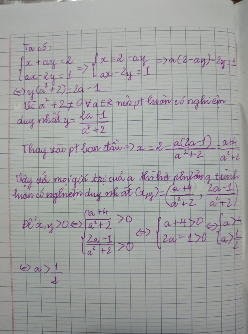 $\Rightarrow (a^2+2)y= 2a-1$
