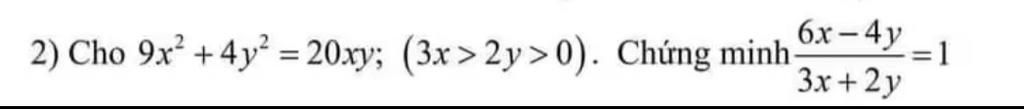 $\to \dfrac{6x-4y}{3x+2y}=\dfrac{6\cdot 2y-4y}{3\cdot 2y+2y}=\dfrac{8y}{8y}=1$