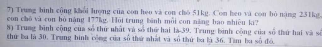 Trung bình cộng khối lượng của con heo, con bò, con chó là: