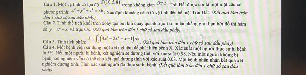 phương trình: x+y’+z =36 Xác định khoảng cách từ vệ tinh đến bề mặt Trái Đất. (Kết quả làm tròn