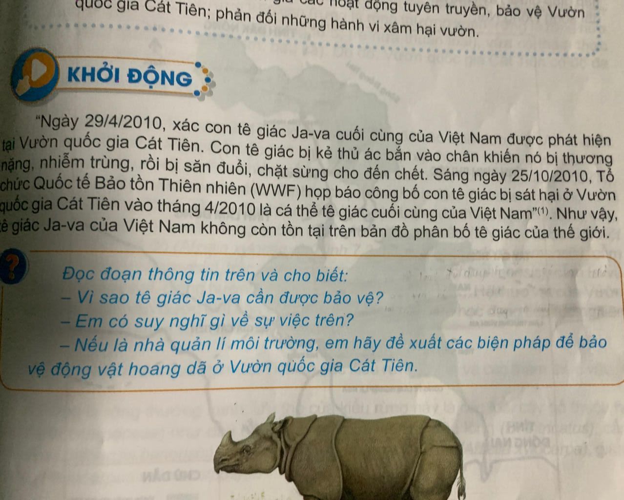 Tê giác Ja-va cần được bảo vệ do đó là cá thể động vật duy nhất và rất hiếm tại Việt Nam.Nó đã nói lên sự đa dạng của động vật tại Việt Nam trong thời đại này.