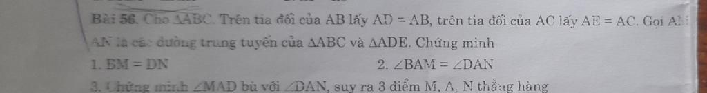 2.Xét `DeltaABM,DeltaADN` có: