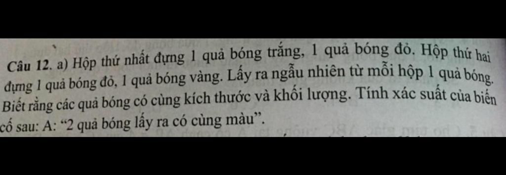 Vậy xác xuất lấy được `2` quả bóng cùng màu là `1/4`