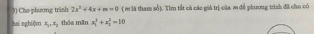 `Δ' = b'^2 - ac = 2^2 - 2m = 4 - 2m ≥ 0`