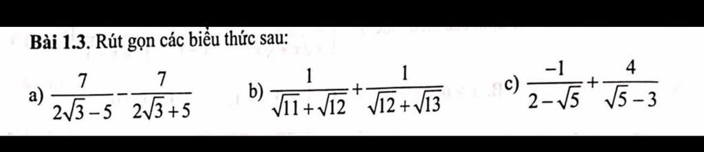 `=(sqrt12-sqrt11)/((sqrt12+sqrt11)(sqrt12-sqrt11))+(sqrt13-sqrt12)/((sqrt13-sqrt12)(sqrt12+sqrt13)`