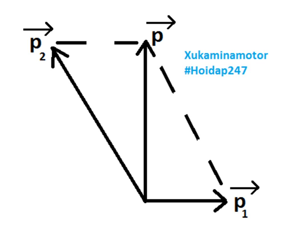 Sau khi nổ: `p' = p₁ + p₂ = m₁v₁ + m₂v₂`