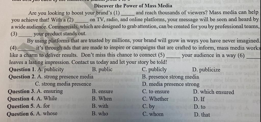 * Media presence (n) : sự có mặt của truyền thông
