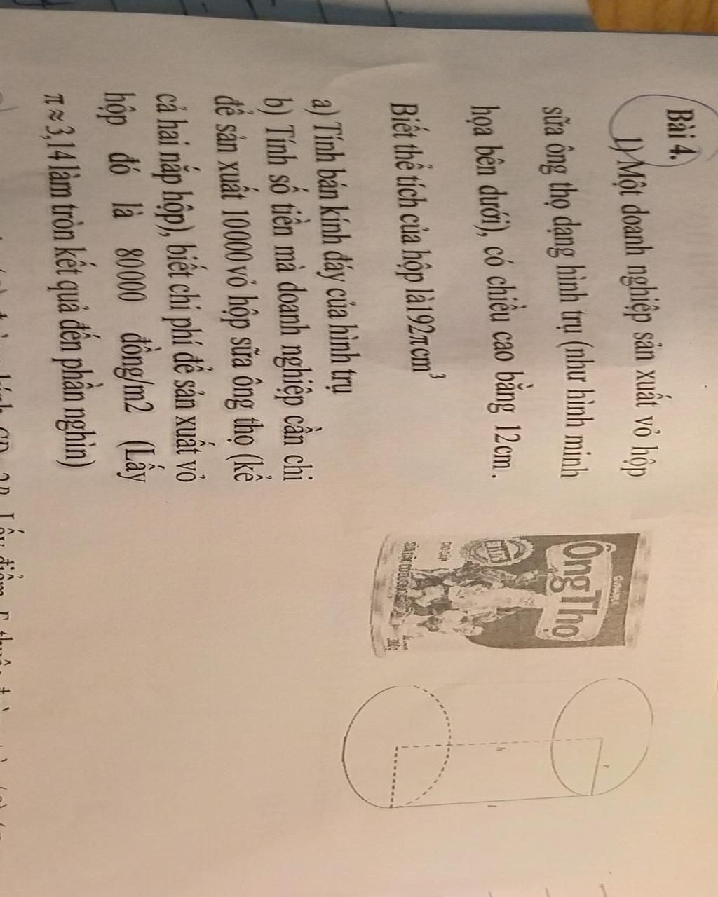 Vậy doanh nghiệp cần trả 32 153 600 đồng để sản xuất 10000 vỏ hộp sữa ông thọ.