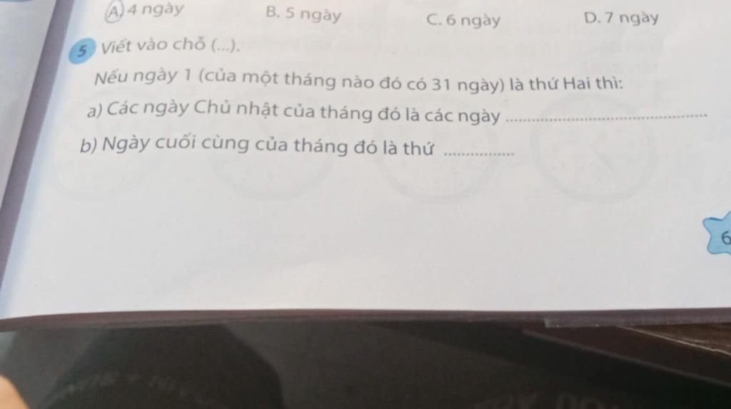 Ngày `31` cánh ngày `1` số tuần là: là: