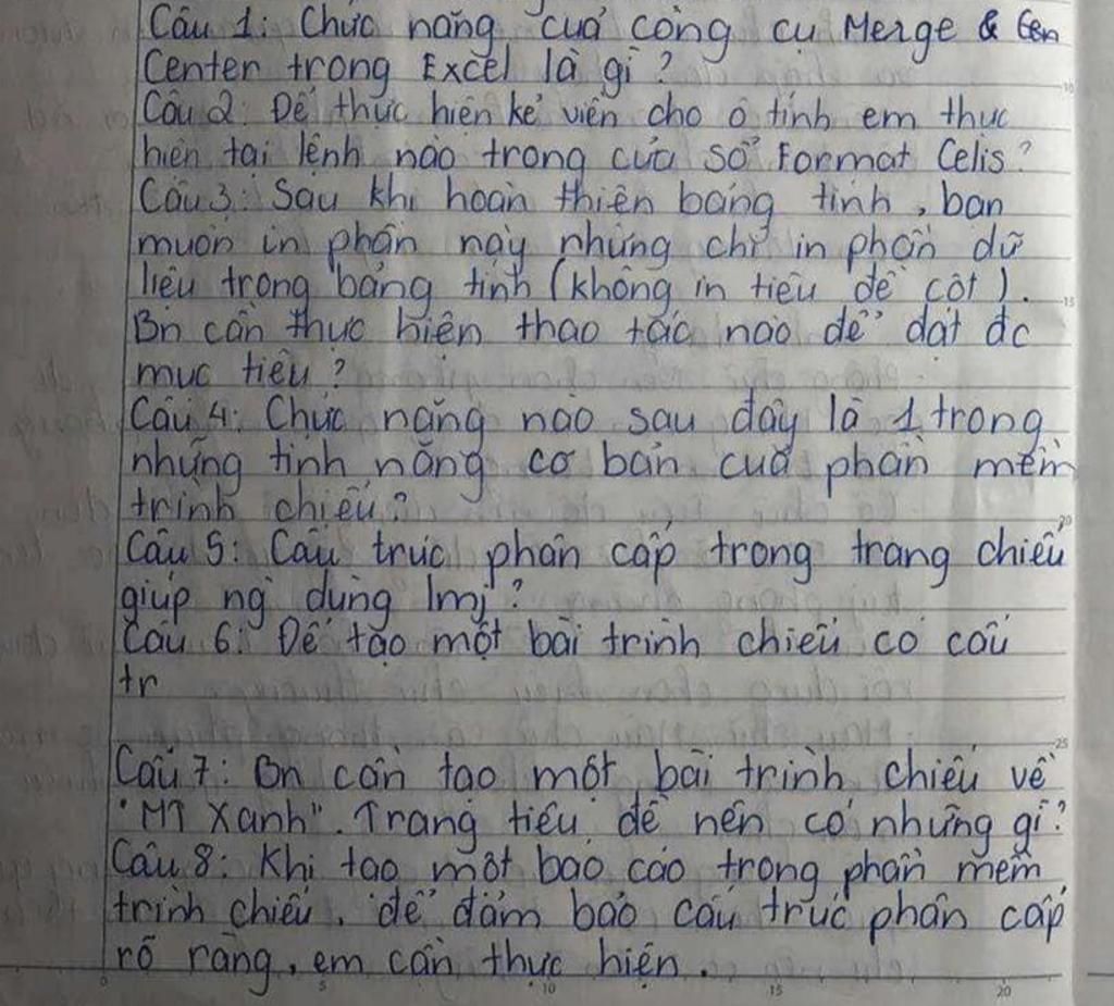 Câu 3: Sau khi hoàn thiện bảng tính, bạn