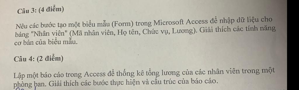 Câu 3: Tạo biểu mẫu nhập dữ liệu
