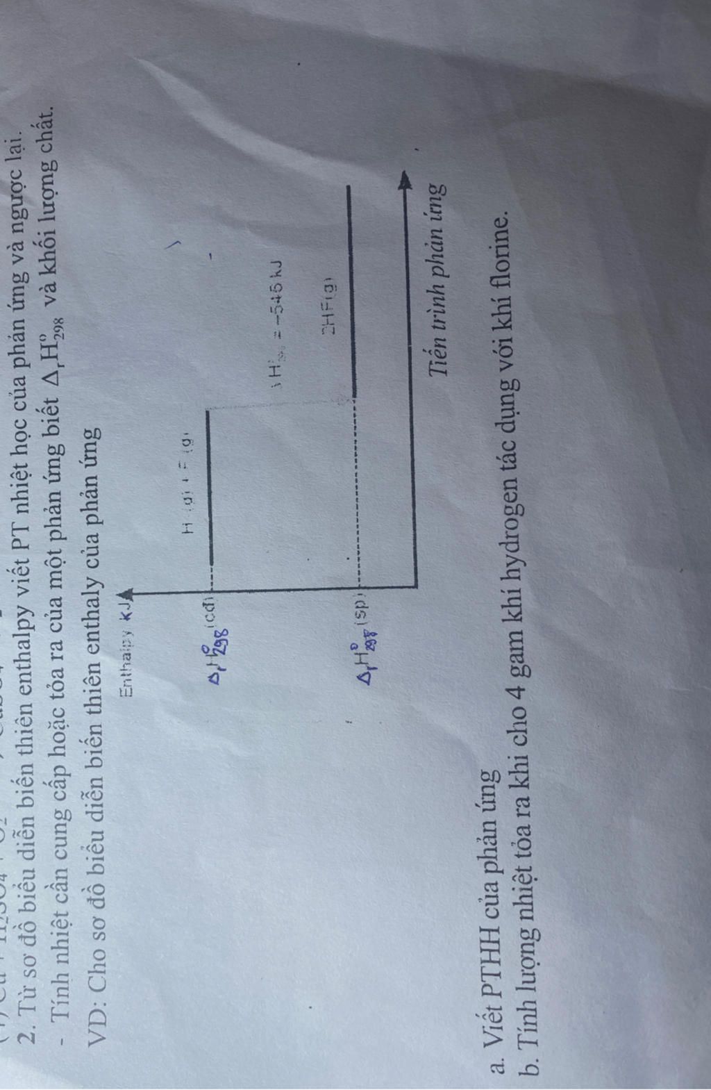 a) $H_{2}$ (g) + $F_{2}$ (g) → 2HF (g) có: Δr$H^{o}$ = -546 kJ
