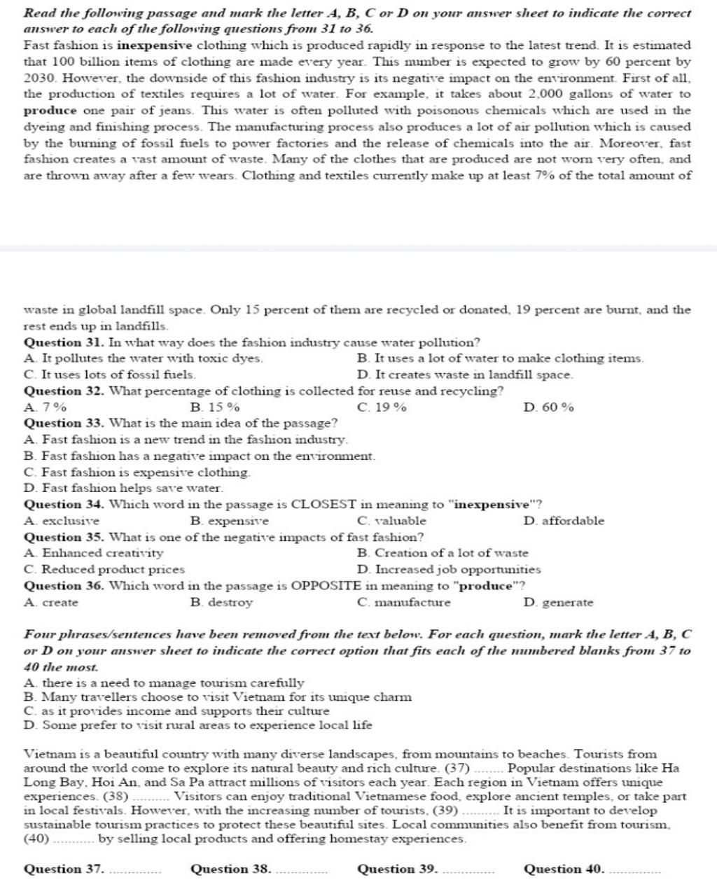 Read the following passage and mark the letter A, B, C or D on your answer sheet to indicate the correct