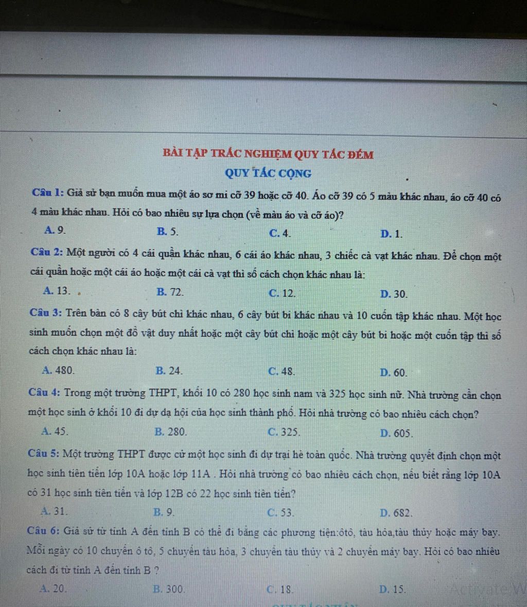 Vậy có: 5+4=9 cách chọn về màu áo và cỡ áo