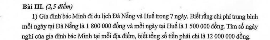 Gọi `x` là số ngày nghỉ của gia đình bác Minh tại Đà Nẵng