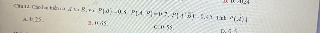 `=>P(A)=0,8.0,7+0,2.0,45=0,65`