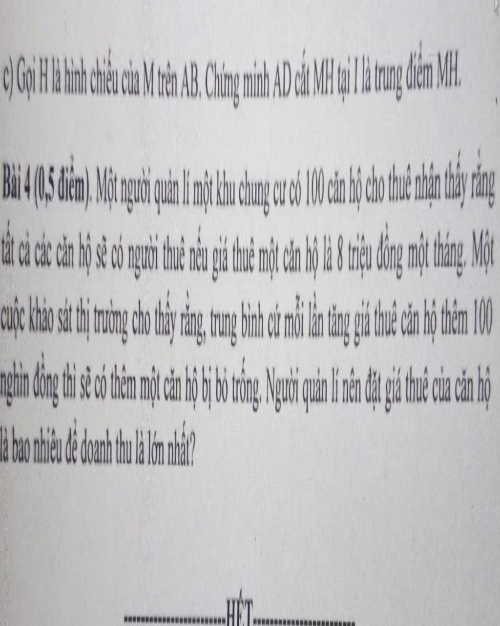 Vậy người quản lí nên đặt giá thuê tốt nhất mỗi căn hộ là `9` triệu.