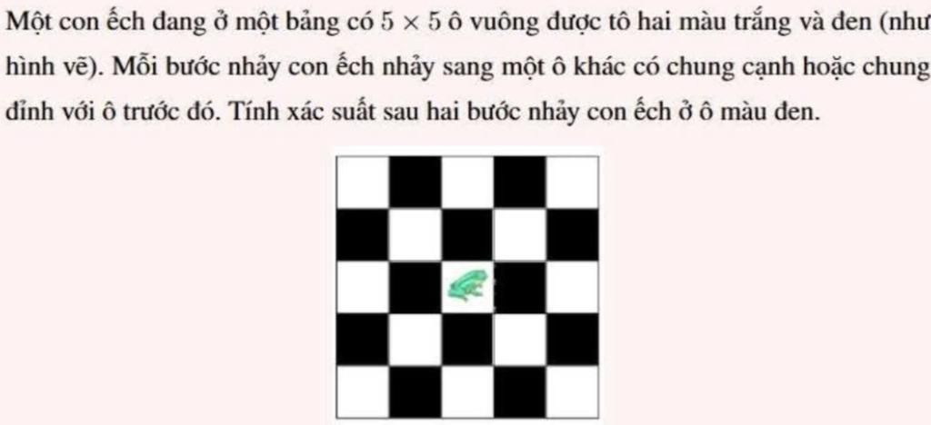 Xét biến cố A"sau `2` nước con ếch ở ô màu đen"