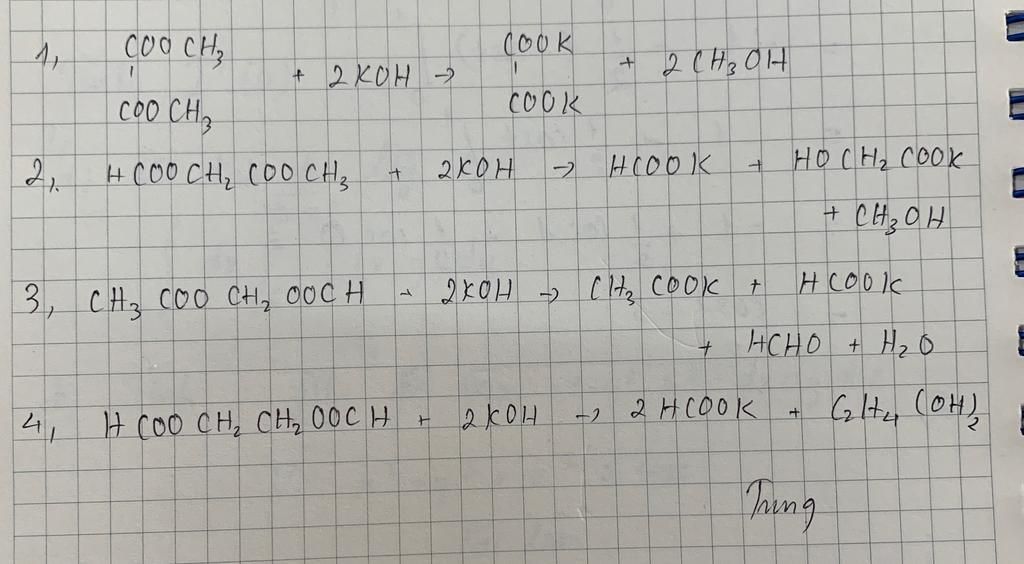 $HCOO-CH_2-COOCH_3+2KOH\xrightarrow{t°} HCOOK+HO-CH_2COOK+CH_3OH$
