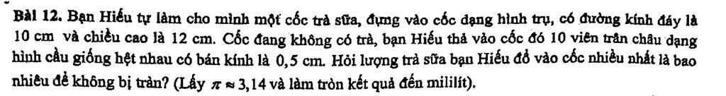 Lượng trà sữa bạn Hiếu có thể đổ vào cốc nhiều nhất là: