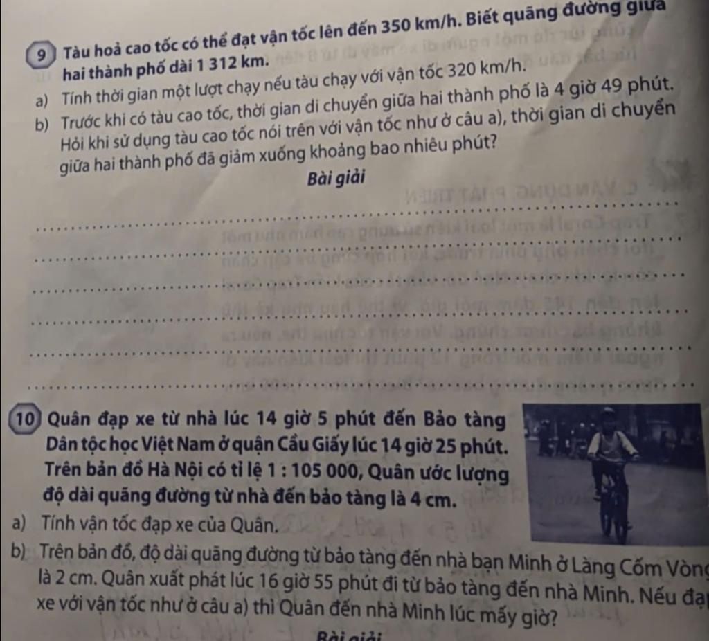 `a)` Thời gian Quân đạp xe từ nhà đến bảo tàng là:
