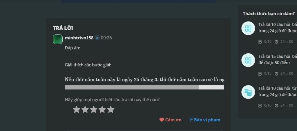 Nếu thứ năm tuần này là ngày 25 tháng 3, thì thứ năm tuần sau sẽ là ng