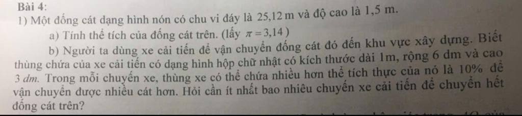 `\frac{25.12}{0,198} ≈ 126,86` => Vậy cần ít nhất 127 chuyến