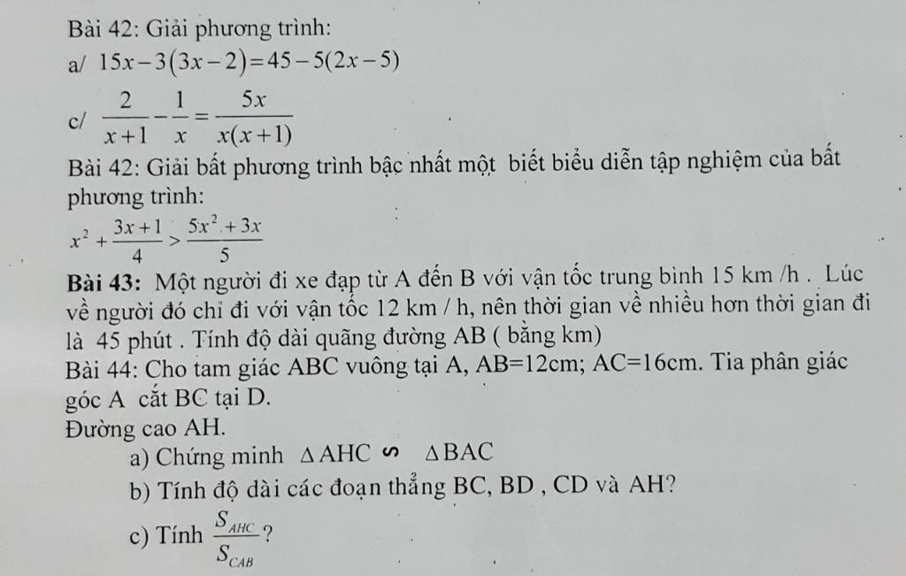 Bài 43: Một người đi xe đạp từ A đến B với vận tốc trung bình 15 km /h . Lúc