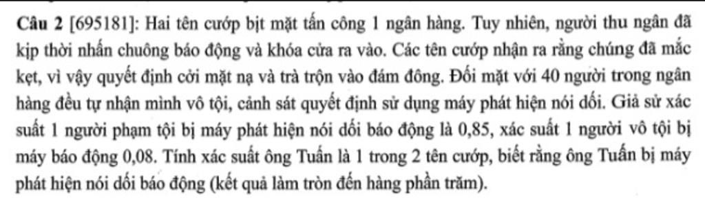 Trong 40 người có 2 người là cướp, 38 người không phải cướp => P(A) = 2/40, P(A*) = 38/40