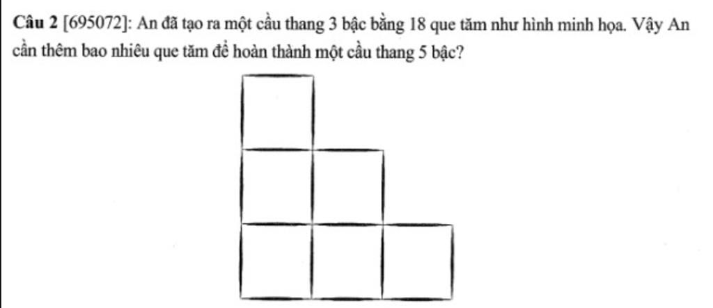 $\to$Cần $40$ que tăm để hoàn thành cầu thang $5$ bậc