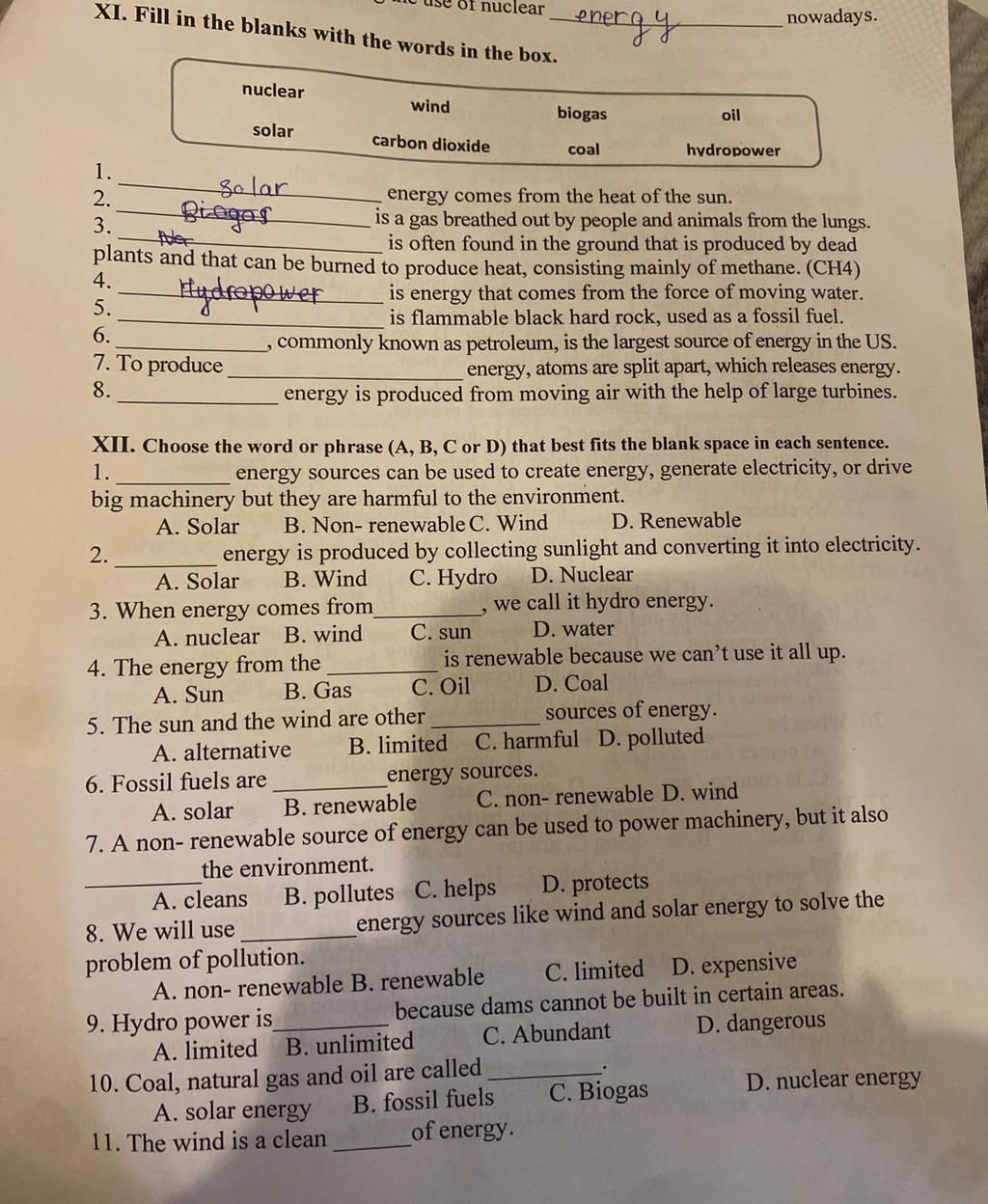 `4`.The energy from the (A) Sun is renewable...