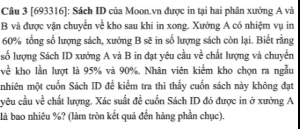 Xưởng A in $60\%$ tổng số sách, xưởng B in $40\%$