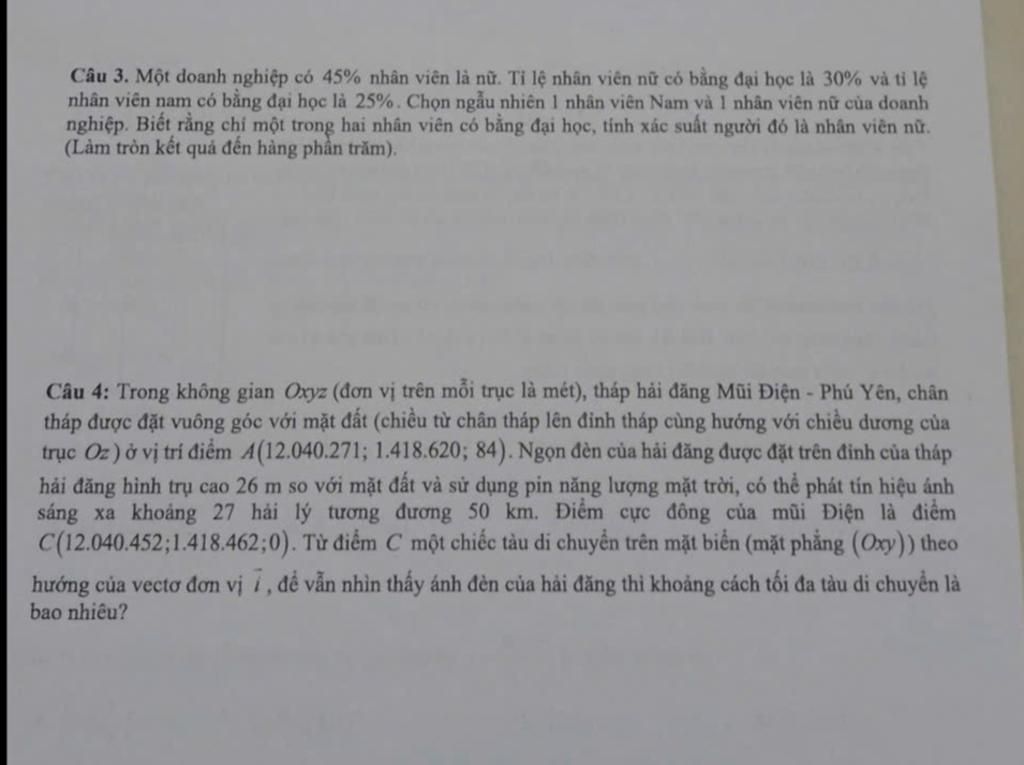 Tỉ lệ nhân viên nữ có bằng đại học: $30\%\to P(Nữ+DH)=0.45\cdot 0.3=0.135$