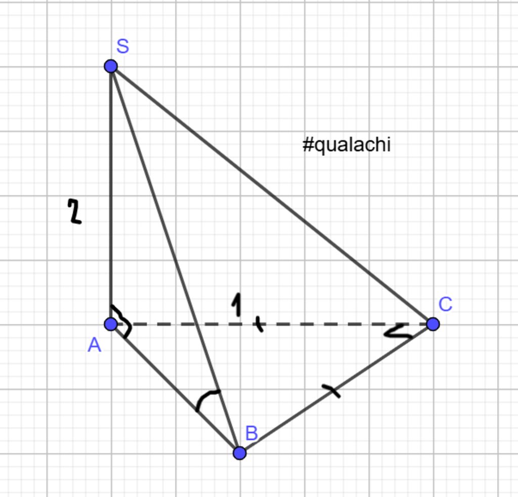 Cho hình chóp S.ABC có đáy là tam giác vuông cân tại C, SA vuông góc (ABC), biết SA=2, AC=1. Tính tang góc giữa đường thẳng SB và mp đáy (làm tròn đến hàng phần trăm)